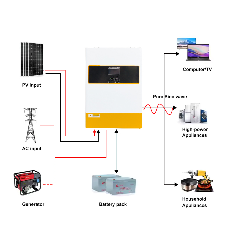 | Tipo di inverter | Inverter solare ibrido | Tipo di output | Wave sinusoidale singola, pura |